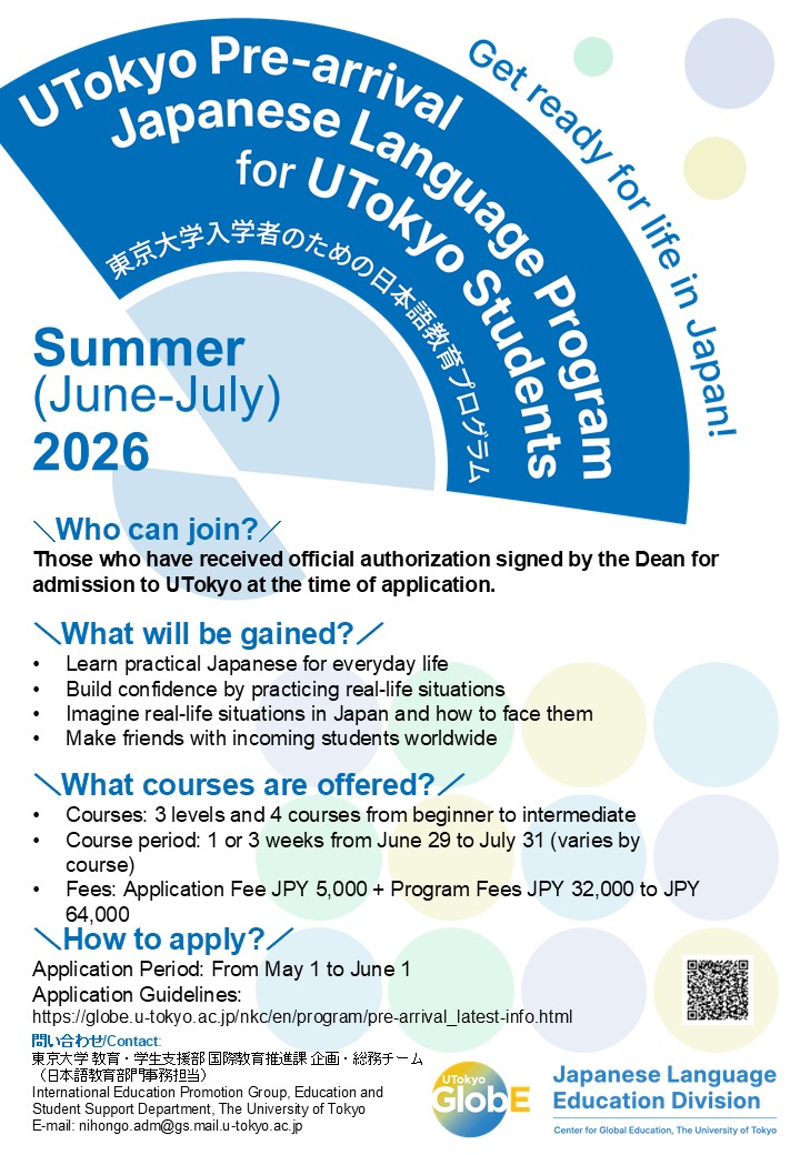 - This program is exclusively for Japanese language education. It is distinct from the UTokyo GUC Summer Program offered by the Global Education Center for students enrolled in overseas universities. This program is not listed on the UTokyo page linked from the TAO home page; it can be accessed only via the above link. Please be careful to avoid any confusion.